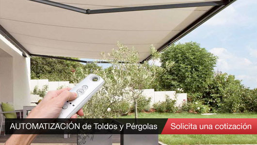 Ahora podrás disfrutar de tus Toldos y Pérgolas con la mayor comodidad, con el sistema de automatización o motorización podrás desplegar o cerrar tus toldos a distancia y también, regular la protección con un simple toque. Descubre la gama completa de automatizaciones para toldos, persianas, pérgolas y cortinas.
